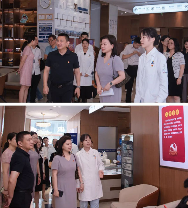 在成都新桥口腔医院行政院长孙孝华同志、成都新桥口腔医院党支部书记蒋越同志的带领下,双方党员共同参观了成都新桥口腔医院党支部党务公示栏、党建活动室、党建文化阵地等区域,并通过座谈的形式展开学习和交流。