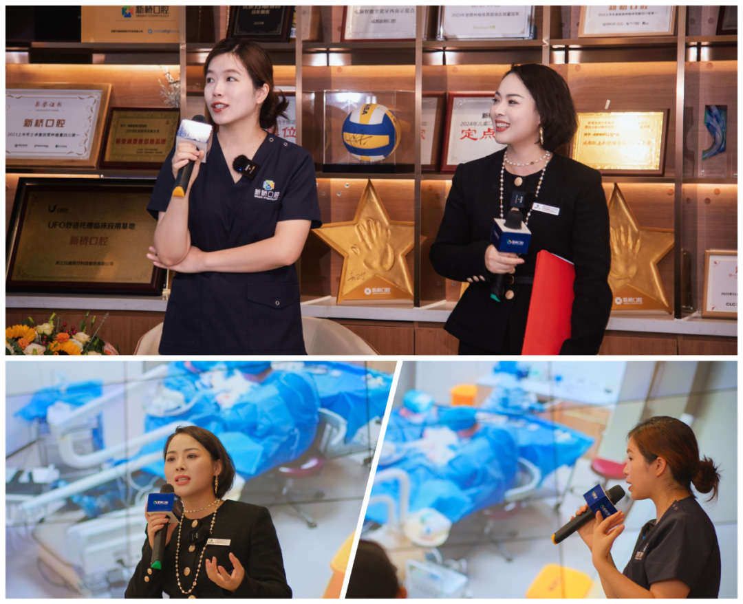 活动当天,一位前不久在新桥口腔完成半口种植的顾客秦阿姨也来到现场,向大家分享种牙体验和术后感受。秦阿姨刚一上场,就引起了观众们的惊叹,谁也不敢相信眼前这位面容饱满、神采奕奕的漂亮阿姨竟已有85岁高龄。秦阿姨表示:“我对比过别家医院,新桥口腔的人气、专业性以及服务态度是最令我满意的。由于我年龄比较大而且还有骨质疏松的情况,医生也是结合了我的实际情况并给出专业建议,从进医院到完成手术后全程都有专人专岗服务,所以我最终选择了新桥。”