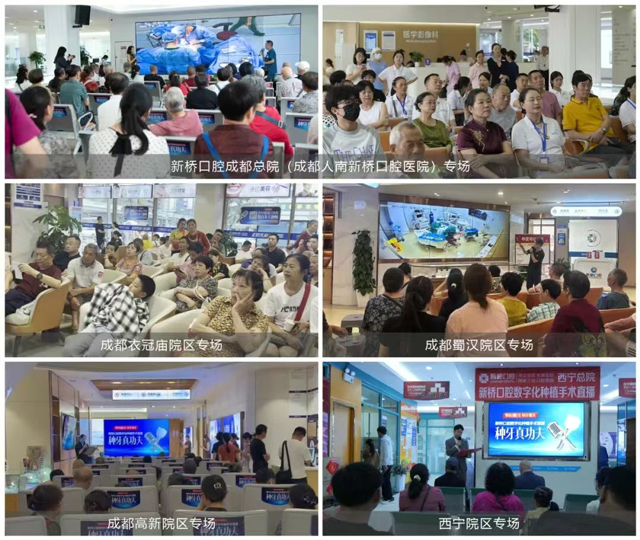 8月,新桥口腔圆满举办了6场数字化种植手术直播,共吸引了数百名缺牙顾客到场观摩。本月“种牙真功夫”覆盖新桥口腔成都总院、成都衣冠庙、蜀汉、高新院区以及西宁院区,通过多维度专业解析、直播流程透明化、智能化尖端设备应用等,系统解答了市民对数字化种植的疑虑与担忧,更全方位展现了医院在数字化种植领域的专业积淀与技术高度。