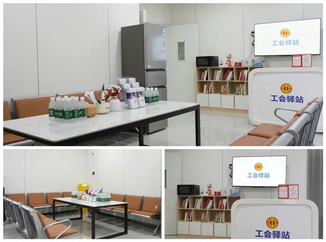 工会驿站设于新桥口腔成都总院(成都人南新桥口腔医院)一楼,空间布局合理,环境整洁舒适。步入驿站,舒适的座椅映入眼帘,整齐摆放的矿泉水、多接口充电设备、书刊杂志、雨伞、饮水机、冰箱等便民设施一应俱全,还提供外伤急救药箱、免费观影、微波炉热餐等服务,切实体现“冷可取暖、热可纳凉、渴可饮水、累可歇脚、伤可急救”的全方位服务理念。