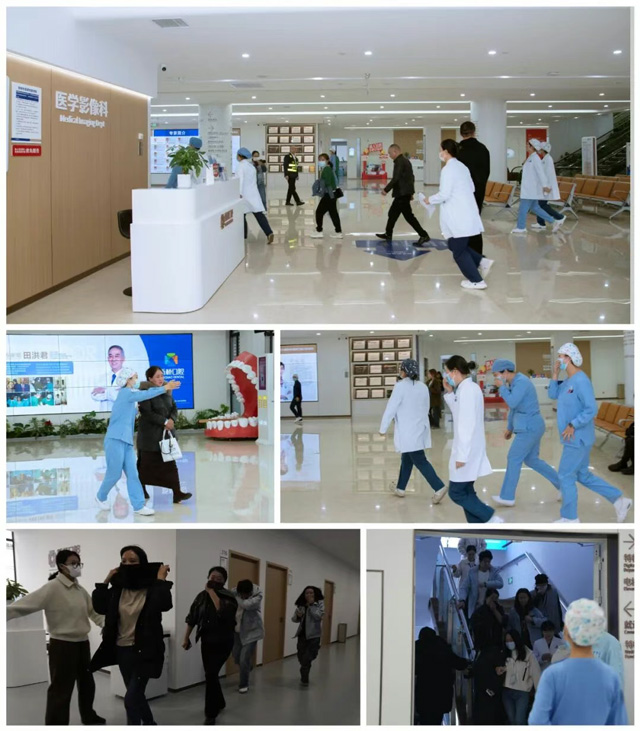 下午17时整,院内发生模拟火情,广播与声光报警同步启动。安保人员第一时间启动应急响应,迅速拨打110、119请求支援,同步自行开展先期处置。总值班员及各网格包片负责人闻令而动,迅速就位。在疏散引导小组统一指挥下,全体员工及在院患者严格执行“关闭电源、收拾物品、保持安静”的要求,沿预设疏散路线,以低姿捂口鼻的规范动作,迅速、有序撤离至停车场集结区。整个过程指令清晰、响应迅速、配合紧密,全员在5分钟内安全转移完毕。